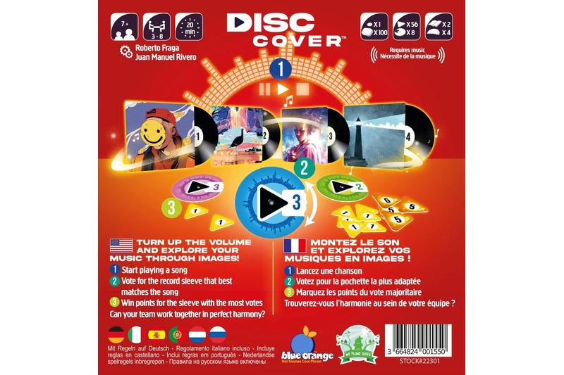Im musikalischen Assoziationsspiel Disc Cover müssen die Spieler das Plattencover auswählen, das am besten zur laufenden Musik passt. Das Spiel ist mit jeder Playlist und anderen musikalischen Medien spielbar und sorgt so automatisch für die perfekte Partystimmung am Spieletisch. Die fantasievollen Plattencover können sich wirklich sehen lassen und unterschiedliche Spielmodi garantieren langen Spielspaß. Hier kommt jeder Musikfan auf seine Kosten!