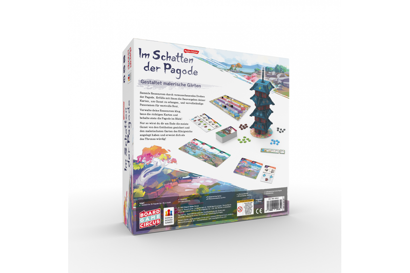 In Im Schatten der Pagode müsst ihr durch das Vervollständigen von Sets die Gunst der Gottheiten erlangen. Jedes Set ist ein „Panorama“ und zeigt einen Blick auf eure malerischen Gärten, die ihr am Fuße der königlichen Pagode anlegt. Sammelt Ressourcen durch vorausschauendes Drehen der Pagode. Erfüllt mit ihnen die Bauvorgaben eurer Karten, um Gunst zu erlangen, und vervollständigt Panoramen für wertvolle Boni. Verwaltet eure Ressourcen klug, baut die richtigen Karten und behaltet stets die Pagode im Blick! Nur so werdet ihr euch am Ende die meiste Gunst von den Gottheiten gesichert und den malerischsten Garten des Königreichs angelegt haben. Wer von euch erweist dich als des Thrones würdig?