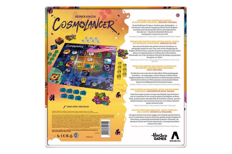 Herzlichen Glückwunsch, Sie haben gerade Ihren ersten Auftrag als freiberuflicher Weltraum-Fotograf erhalten - einem Cosmolancer! Auch wenn die Bezahlung nur mittelmäßig ist und die Gefahr nicht einschließt - mit Cosmolancing haben Sie sich einen Lebenstraum erfüllt. Mit Cosmolancer, einer galaktischen Neuinterpretation des Kingdoms Spiels von Reiner Knizia, geht es zu den Sternen! Die Spieler legen Schnappschusskacheln, Gefahrenkacheln und Kosmokameras ab, um die lukrativsten Fotos von Weltraumphänomenen zu schießen. Vorsicht vor kosmischen Gefahren, die die Aufnahmen sabotieren können. Der Spieler, der die meisten interstellaren Credits über 3 Runden hinweg verdient, gewinnt! Strategie-Brettspiele sind unterhaltsame Spiele für Spieleabende und für jede Gelegenheit. Dieses Sci-Fi-Brettspiel für Erwachsene, Jugendliche und Kinder ab 9 Jahren ist ein tolles Geschenk für Fans von Reiner Knizia Spielen, Strategiespielen und Familienspielen.