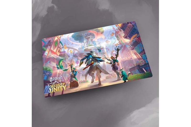 High quality print, natural rubber, smooth surface and anti-slip backing. This richly illustrated playmat captures the spirit of Seeds of Unity and brings all the magic of Altered to your table.