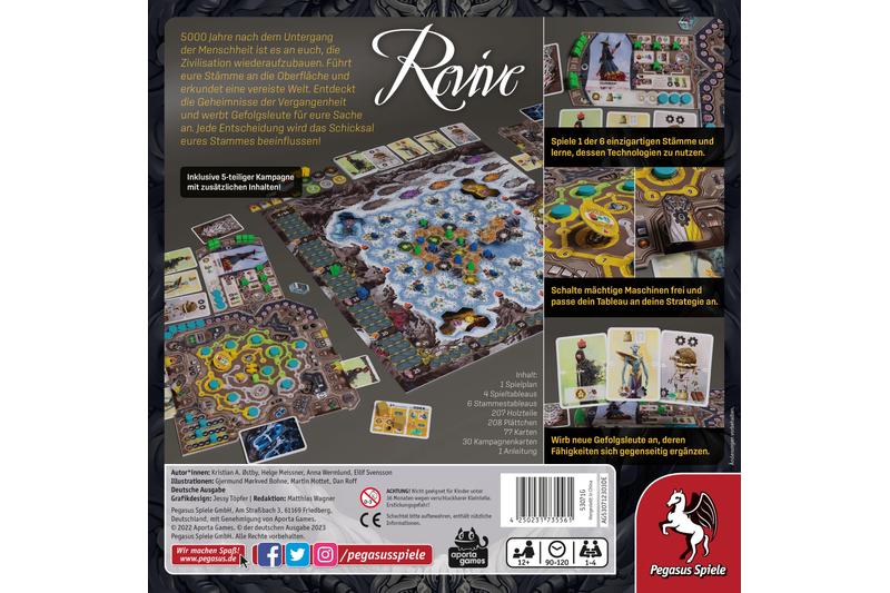 Das Eis zieht sich zurück... und eine neue Erä bricht an: 5.000 Jahre nach dem Untergang der Zivilisation blüht neues Leben auf. In Revive führen die Spielenden je einen Stamm an und versuchen, die Welt nach ihren eigenen Idealen wieder aufzubauen. Dabei rekrutieren sie Überlebende, erkunden neue Länder, bauen Gebäude und bevölkern die verschiedenen Orte. Bestimmte Aktionen lassen sie Artefakte sammeln. Das Spiel endet, wenn das letzte große Artefakt vom Spielplan genommen wurde.