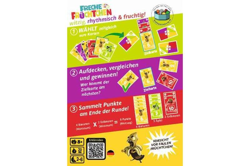"Ein taktisch-fruchtiges Set-Collection-Spiel von Romaric Galonnier und Luc Rémond (bekannt durch das preisgekrönte Sky Team), das frischen Wind in den Familienspiel-Bereich bringt.Mit cleverem Bluffen, strategischem Denken und einer Prise Psychologie sammeln 2–6 Spieler*innen ab 8 Jahren Früchte und wetteifern um die beste Kombination."