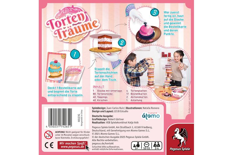 Lust auf ein zuckersüßes Spielvergnügen? Bei Torten Träume schichten die Spielenden bunte Tortenteile blitzschnell aufeinander – aber Vorsicht: Nur wer ein ruhiges Händchen und ein waches Auge hat, kann hier glänzen. Bei dem Geschicklichkeitsspiel spielen alle gleichzeitig und für Fortgeschrittene wird es etwas kniffeliger. Der perfekte Leckerbissen für die Familie und alle, die ihre Feinmotorik auf die Probe stellen wollen.