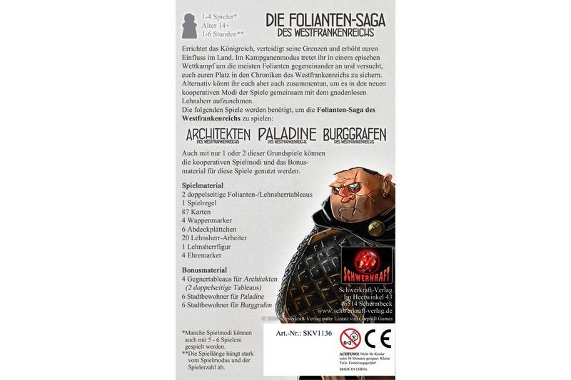 Dies ist eine Erweiterung zu Architekten des Westfrankenreichs, Paladine des Westfrankenreichs und Burggrafen des Westfrankenreichs. Mindestens eines der Grundspiele wird benötigt.