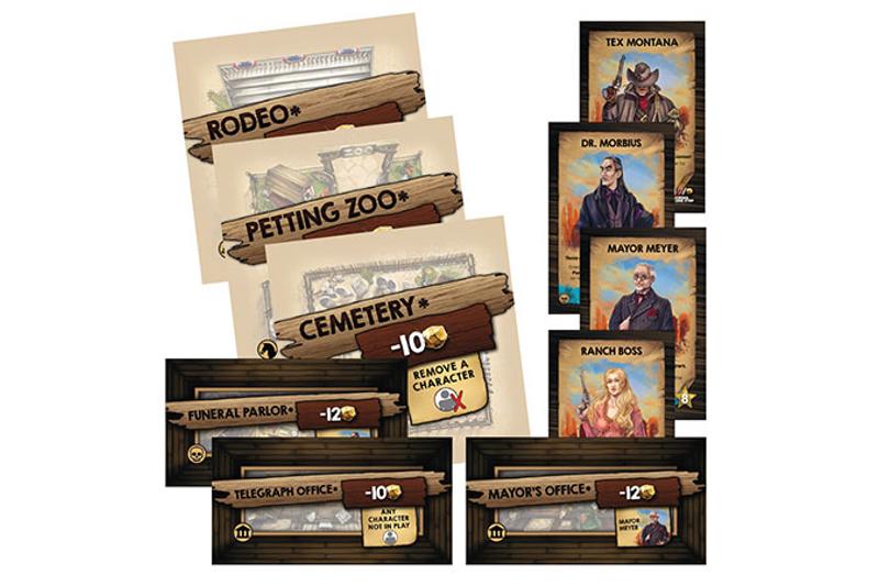 Diese Zielkarten geben dir noch mehr gute Gründe, die Räume aus den Mini-Erweiterungen zu bauen! Je 1 offene und 1 geheime Zielkarte für die Friedhof-, Rodeo- und Bürgermeister-Mini-Erweiterungen als Bonus für alle Unterstützer!