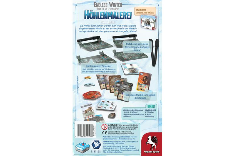Die Erweiterung Höhlenmalerei bringt eine neue Aktionspalte ins Spiel: Malen! Die Spielenden können diese neue Aktionsmöglichkeit und die neuen Maler-Stammesmitglieder in Endless Winter nutzen, um prächtige Höhlenmalereien zu zeichnen und mächtige Boni zu erhalten.