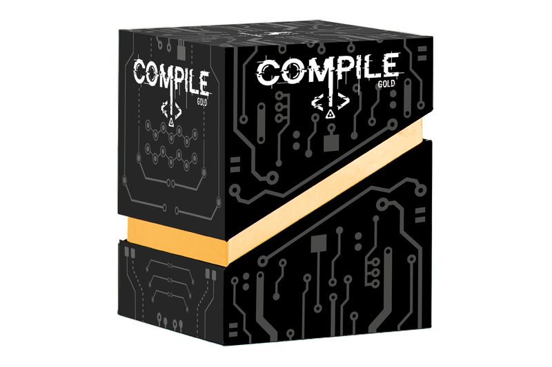 Bei dem Kartenspiel-Duell Compile (Gold Edition) treten zwei Spielende als künstliche Intelligenzen gegeneinander an. Mithilfe der Effekte ihrer Befehlskarten verbinden sie drei Protokolle zu einem cleveren Algorithmus und versuchen, sie vor der anderen Person zu kompilieren.