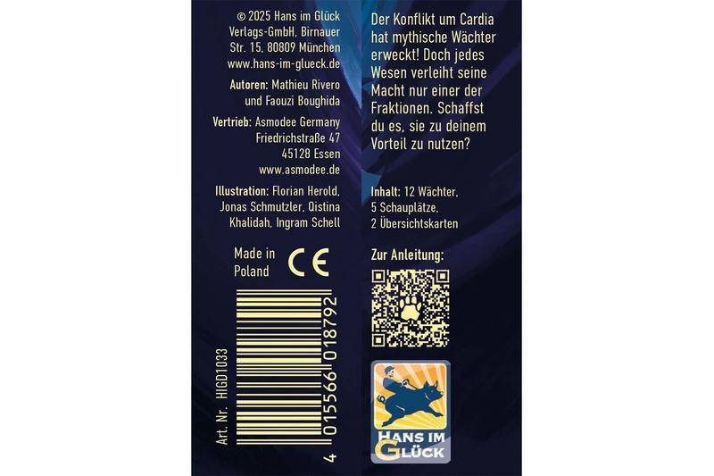 Die Erweiterung Wächter der Wildnis für das Kennerspiel Duell um Cardia führt den neuen Kartentyp Wächter ein. Zusammen mit fünf neuen Schauplatz-Karten bieten sie noch mehr Variabilität und Kombinationsmöglichkeiten für euer episches Duell.