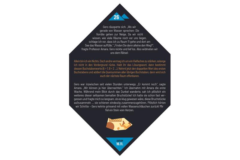 Auf den Spuren des verschollenen Professor Carabosso muss die Rettungsmannschaft bald selbst ums Überleben kämpfen. Wolfgang Kramers Escape- Klassiker „Die Rätsel der Pyramide“ in einer neuen, fordernden Version!