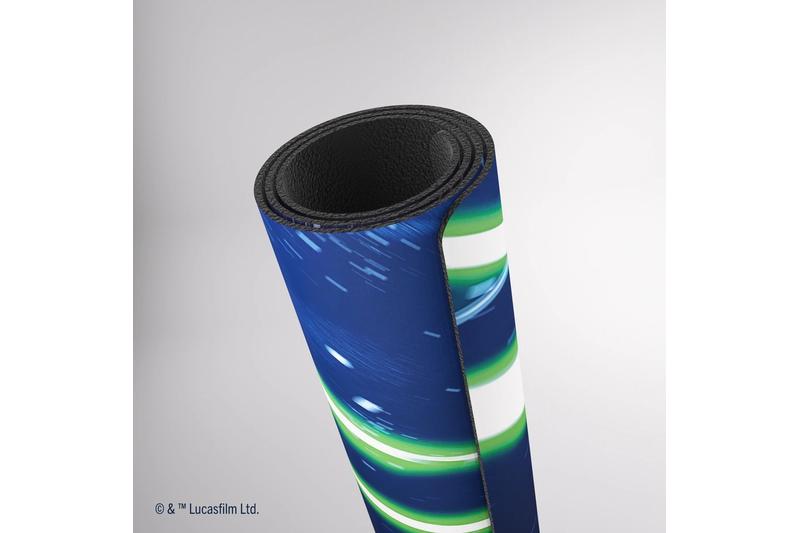 Die Spielmatte ist in vier vollfarbig bedruckten Designs erhältlich und bringt die aufregende Atmosphäre des Star Wars™-Franchise auf den Spieltisch. Diese weich gepolsterte Spielmatte ist 2 mm dick und schützt die Spielkarten vor rauen oder schmutzigen Oberflächen. Jede Game Mat hat eine ultrafeine Oberfläche und eine rutschfeste Rückseite. Das faszinierende Design, die angenehme Haptik und das weiche Material sind ideal für ein noch besseres Spielerlebnis.