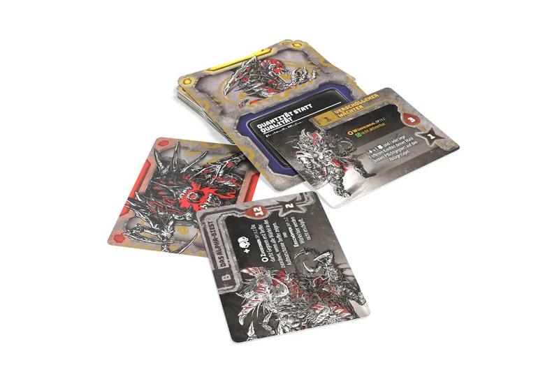 Wie du dir schon denken kannst, dreht sich bei diesem Themenset alles um den Kampf gegen die Aliens. Jede der 45 Karten, gegen die du antreten musst, zeigt einen solchen Gegner. Und besonders fies: Einige davon sind Pflichtgegner. Von denen du jede Runde einen aktivieren musst. Ebenfalls besonders sind die Missionen, die du abschließen solltest, bevor du dich einem der 4 Bosse aus dem Themenset stellst.