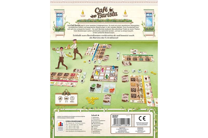 Mit eurer Baristafigur sammelt ihr Zutaten für schmackhafte Kaffee- oder Teegetränke und schließt Bestellungen ab, um gute Bewertungen zu erhalten. Die Partie endet, wenn der Bestellungskartenstapel leer ist oder jemand fünf oder mehr Strafkarten gesammelt hat. Ob Caffé Latte, Espresso Dopplo oder Grüner Eistee – Wer am Ende die höchste Beliebtheit als Barista genießt, gewinnt. Schließt eure Bestellungen rechtzeitig ab und beweist euch als Barista der Extraklasse!