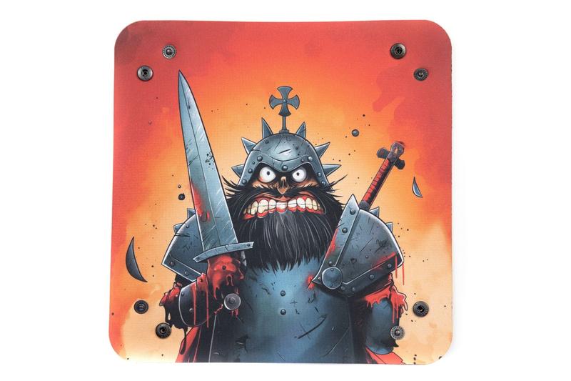 Inject energy and humor into your RPG sessions with the Dice Tray "Warrior". Made from durable rubber, this dice tray offers protection and convenience for your rolls. The design featuring a humorous warrior in full armor adds character to every game, capturing the attention of all players.