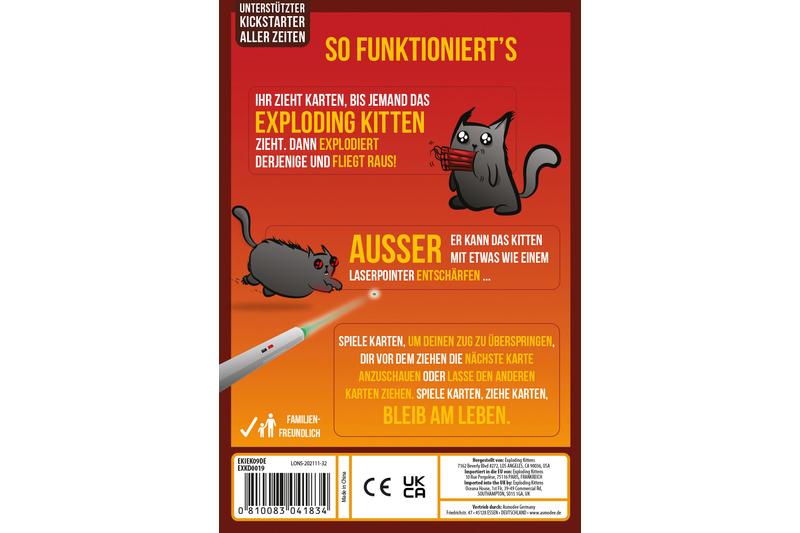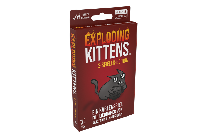 Exploding Kittens, einer der erfolgreichsten Kickstarter aller Zeiten kommt nun als 2-Spieler-Edition. Ein Kartenspiel für Liebhaber von Katzen, Explosionen, Laserstrahlen und … manchmal Ziegen. Als kleinere, handliche Version eignet sich das Spiel perfekt für unterwegs.