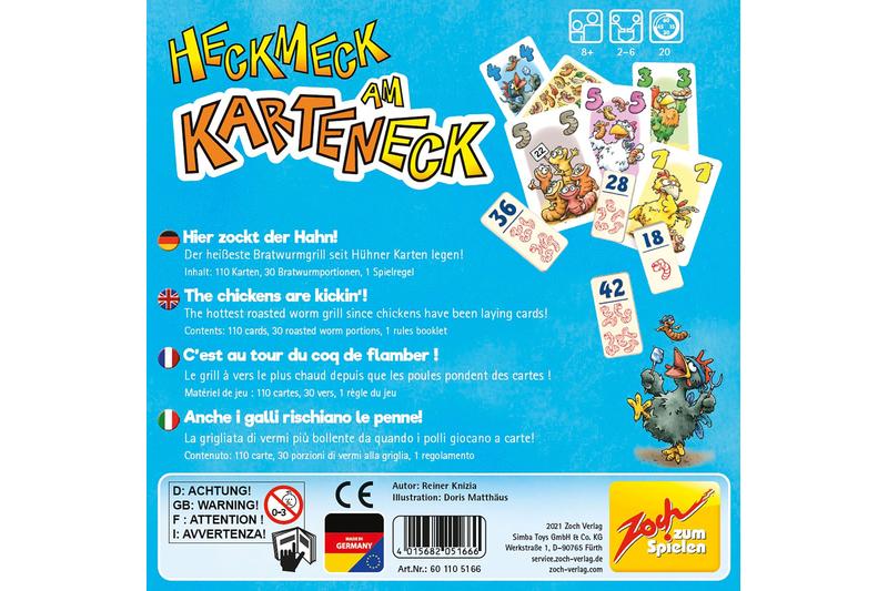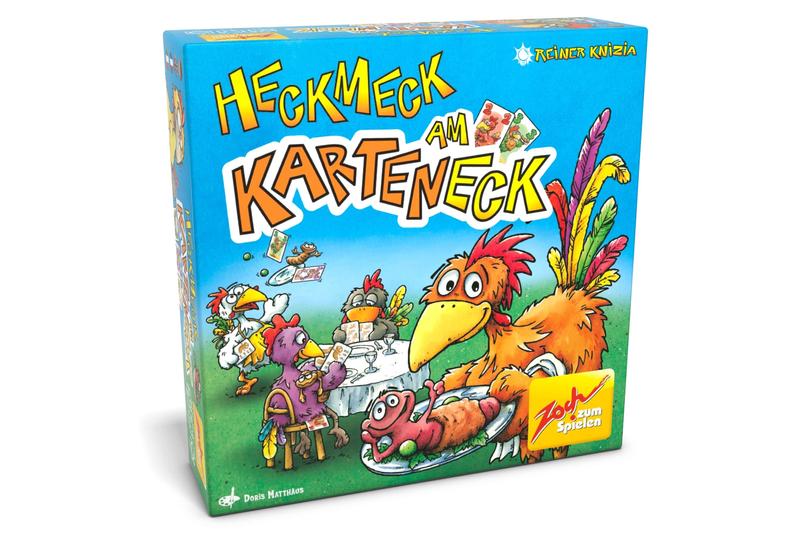 Heckmeck am Karteneck ist das Spiel, bei dem abgezockte Hühner sich die Würmer a la carte vom Grill schaufeln.