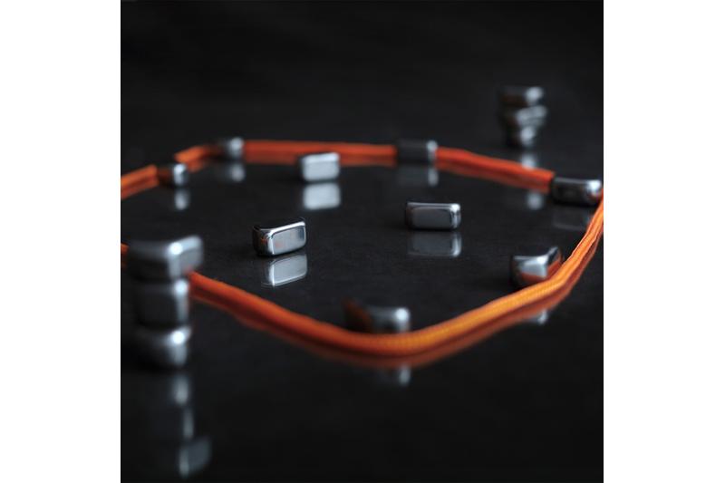 Lege die Schnur in beliebiger Form auf eine flache, horizontale Unterlage. Verteile die 24 Magnetsteine gleichmäßig auf alle Spieler.