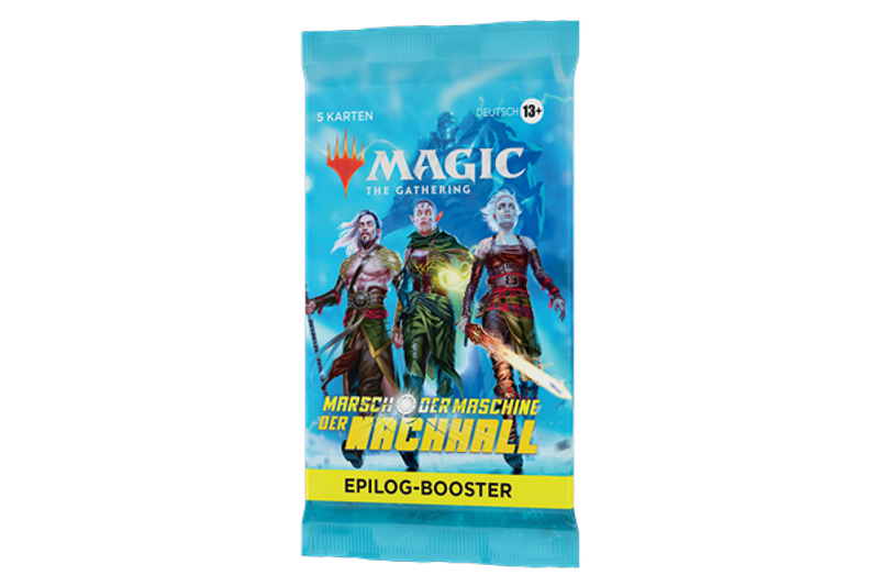 Jeder Marsch der Maschine: Der Nachhall Epilog-Booster enthält 5 Karten in einer Kombination aus 1-3 Karten der Seltenheit selten oder höher und 2-4 nicht ganz so häufigen Karten. In jedem Booster sind insgesamt 1-2 Karten beliebiger Seltenheit traditionelle Foilkarten.