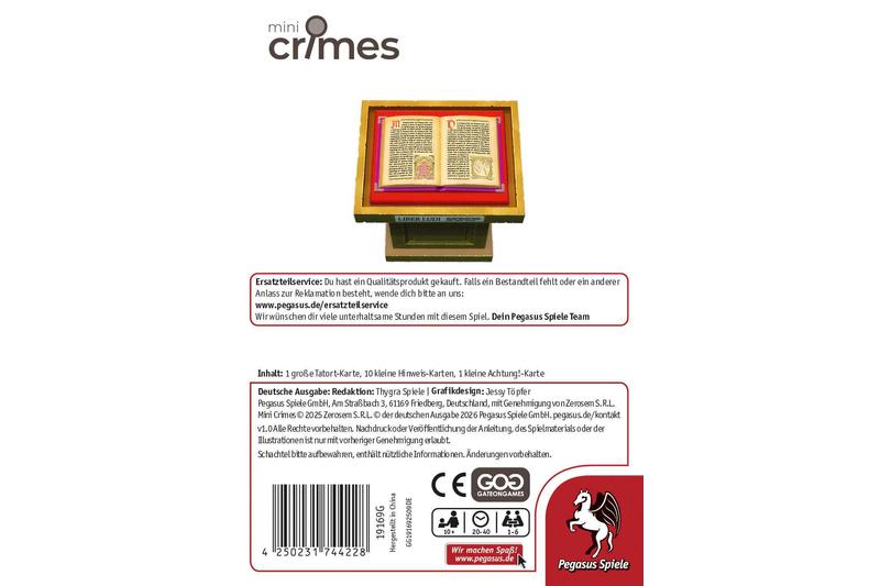 Die MiniCrimes Fälle sind kooperative Krimispiele, in denen die Spielenden ihre Beobachtungsgabe und ihre detektivischen Fähigkeiten unter Beweis stellen müssen, um einen mysteriösen Fall zu lösen. Sie untersuchen dabei den Tatort und bis zu 10 Hinweise, die sie mit Bedacht auswählen müssen, um das Geheimnis zu lüften!