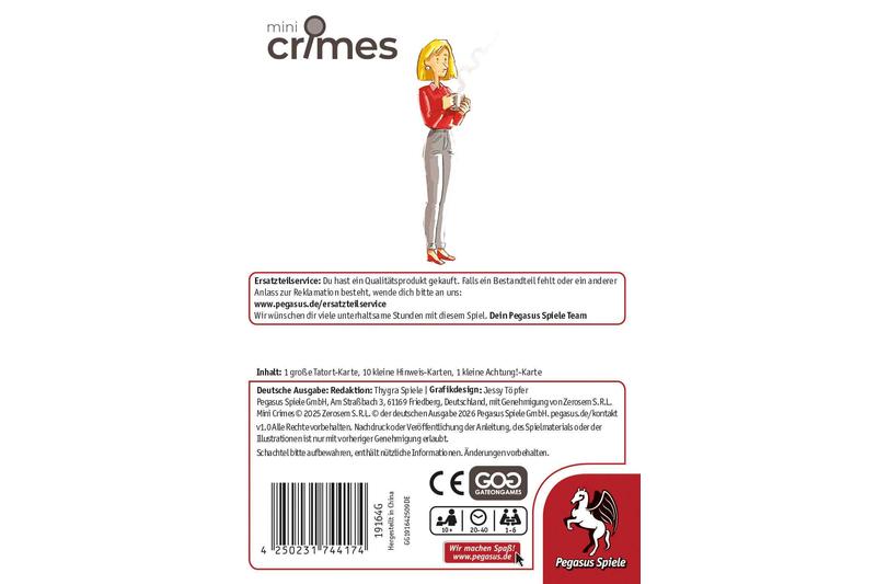 Die MiniCrimes Fälle sind kooperative Krimispiele, in denen die Spielenden ihre Beobachtungsgabe und ihre detektivischen Fähigkeiten unter Beweis stellen müssen, um einen mysteriösen Fall zu lösen. Sie untersuchen dabei den Tatort und bis zu 10 Hinweise, die sie mit Bedacht auswählen müssen, um das Geheimnis zu lüften!