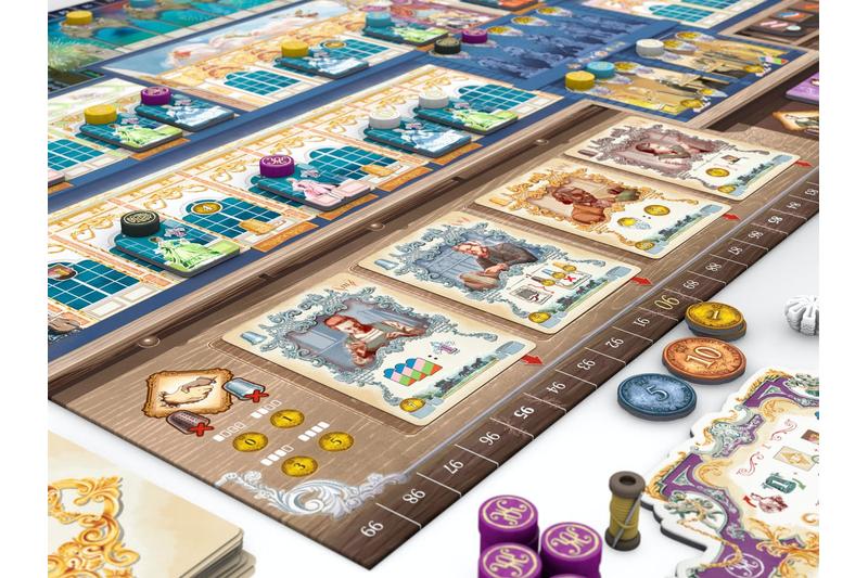 Each turn, you will play an employee card that allows you to perform a task, such as hiring a new employee for your staff, tailoring exquisite gowns and frock coats to rent or sell, or funding some of the many decorations. However, employees are not always able to perform all tasks, so you must plan carefully how you direct them, especially as each employee grants a unique Bonus — including some that generate prestige.