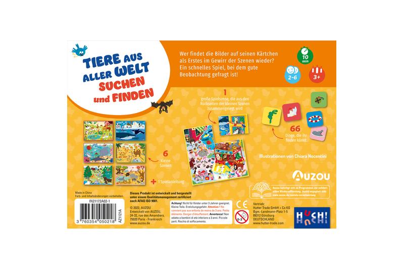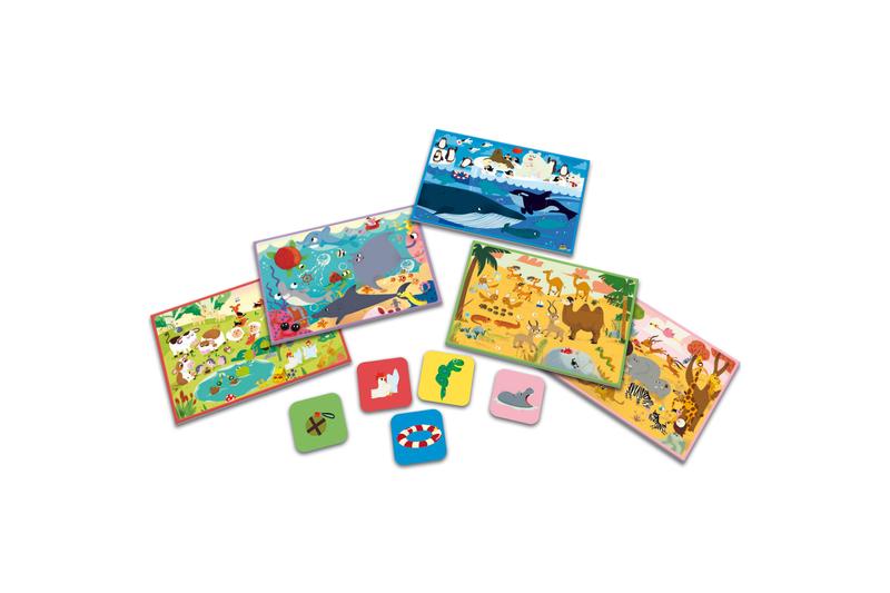 Wer findet die Bilder auf seinen Kärtchen als Erster im Gewirr der Szenen wieder? Ein schnelles Spiel, bei dem gute Beobachtung gefragt ist.Neugierige Kinder, die gerne spielen (und gewinnen!), werden es lieben, das originelle Brettspiel Tiere aus aller Welt zu entdecken und mit Familie und Freunden zu spielen.