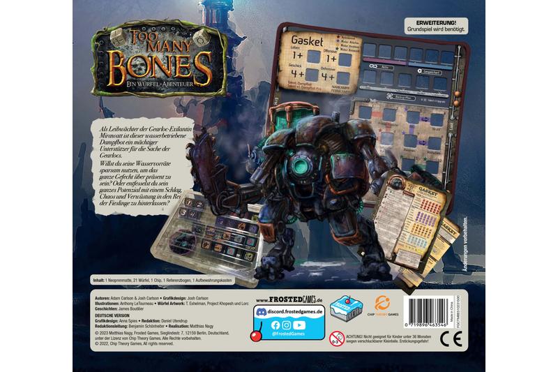 Gasket ist eine Gearloc-Erweiterung für Too Many Bones. Sie bringt einen neuen Charakter mit dazugehöriger Charakter-Matte und 21 Würfeln – und damit viel taktische Tiefe.
